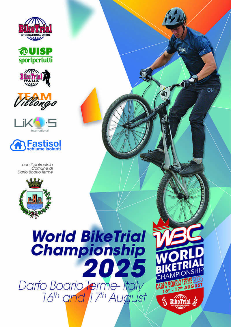 The World BikeTrial Championship 2025 it will be in Italy, in Darfo Boario Terme, Lombardy Region from the 15th to the 17th August 2025, here you can find all informations and download Agenda. To take part in WBC 2025 contact your National Delegate or directly the